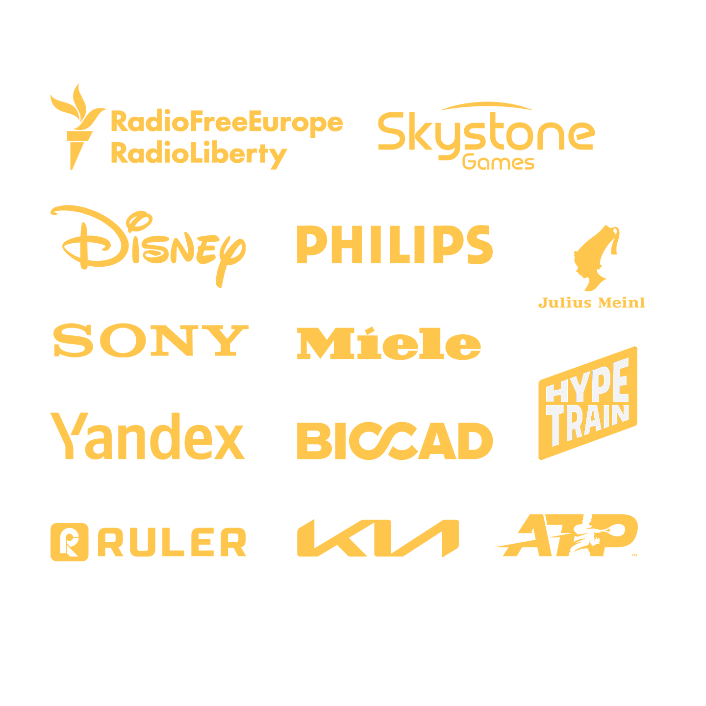ATP / WTA, Kia, Miele, Julius Meinl, Aviasales, Philips, Biocad, Yandex and clients across gaming, media and branded content.